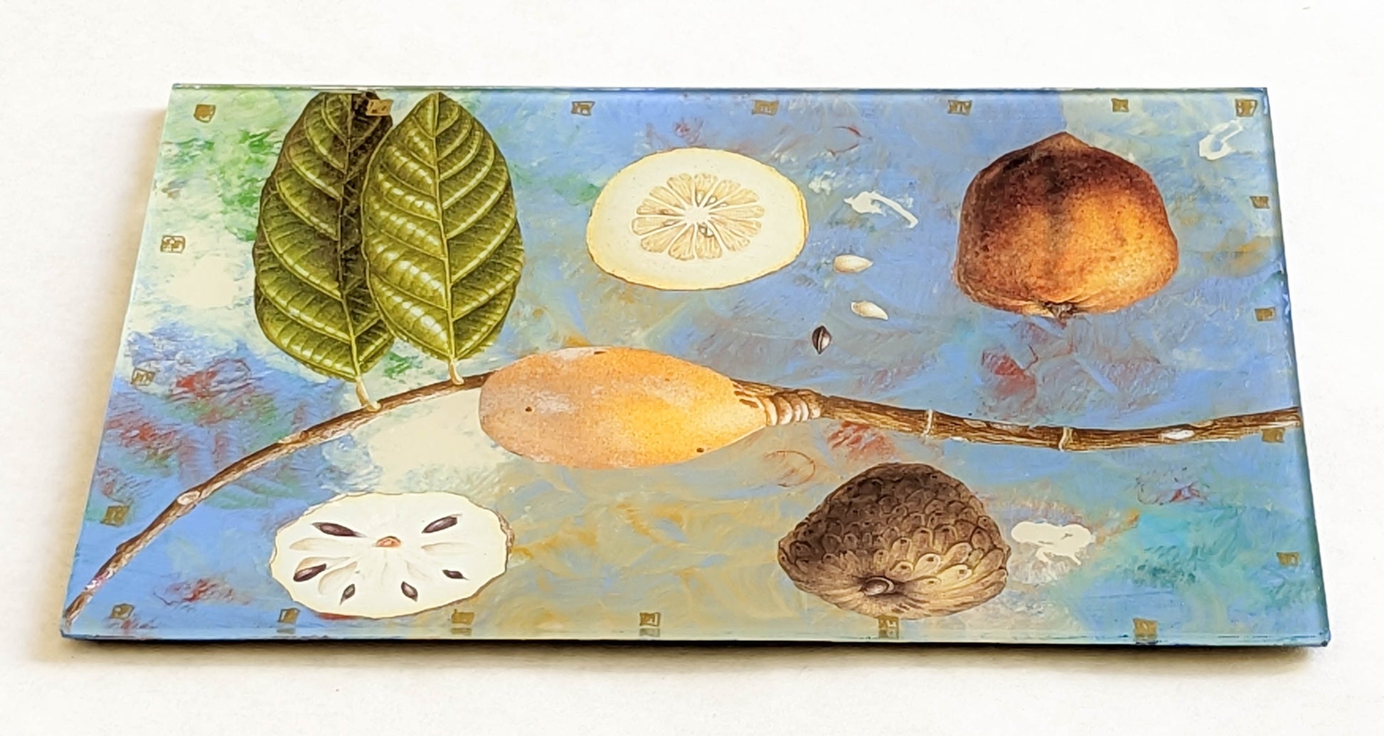 A more subdued plate with muted gold, green and red tons…..here’s to summer!