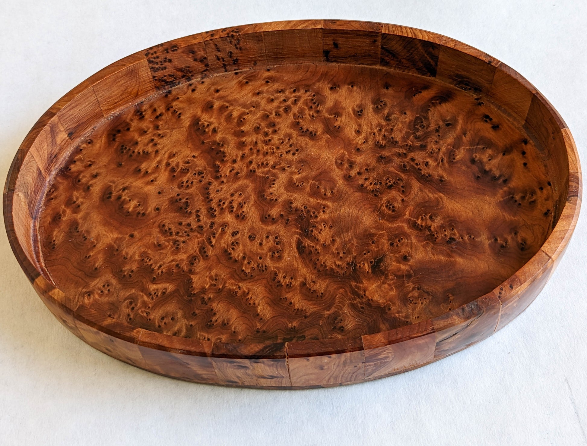 Handcrafted from Moroccan thuja wood, this tray has a lovely wood grain.