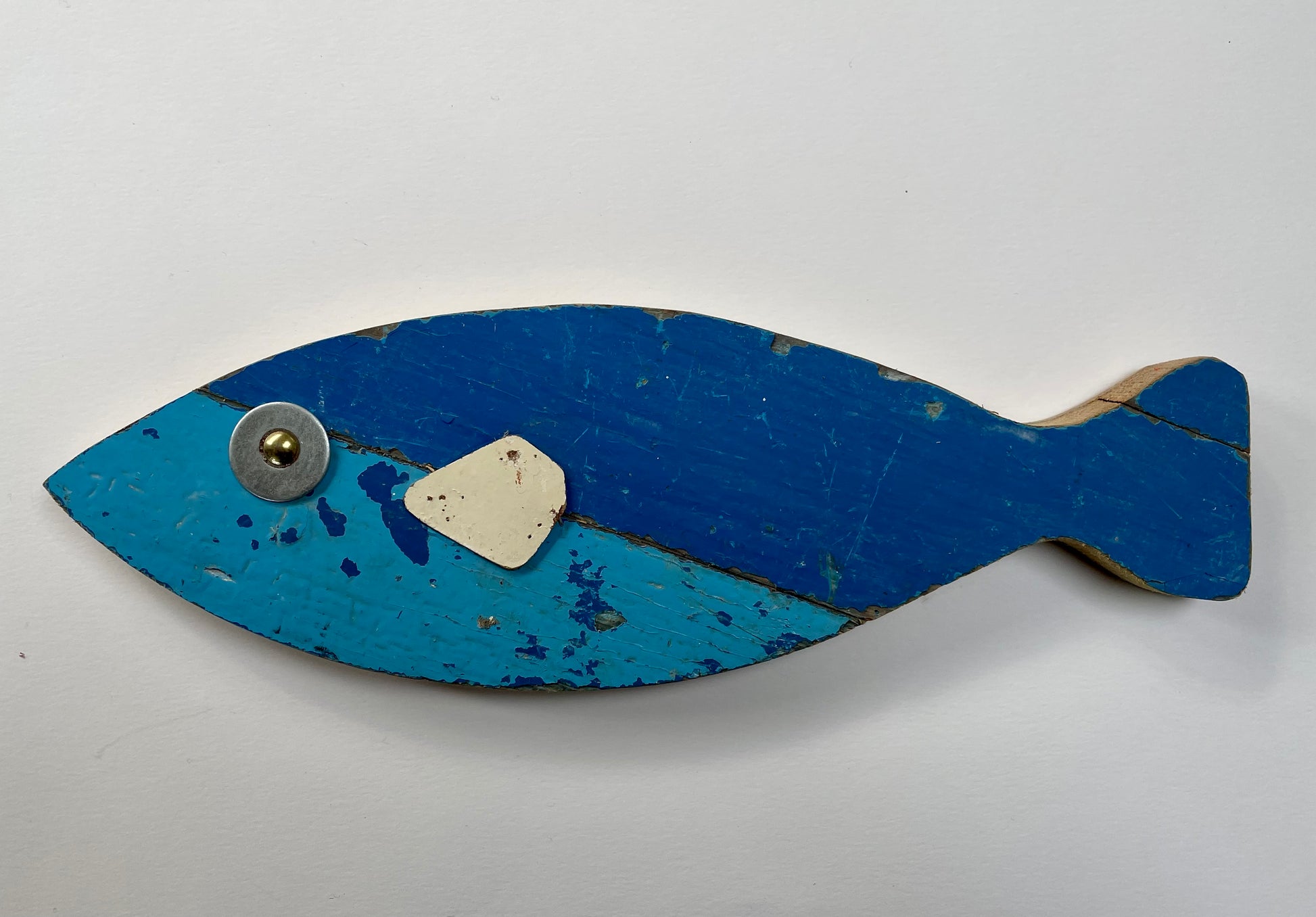 We brought these happy fish back from Morocco and sold every single one much faster than we imagined. A local fisherman/artisan makes these clever little poissons from the salvaged wood and hardware of derelict sardine fishing boats. He adds his own whimsical touches to each.