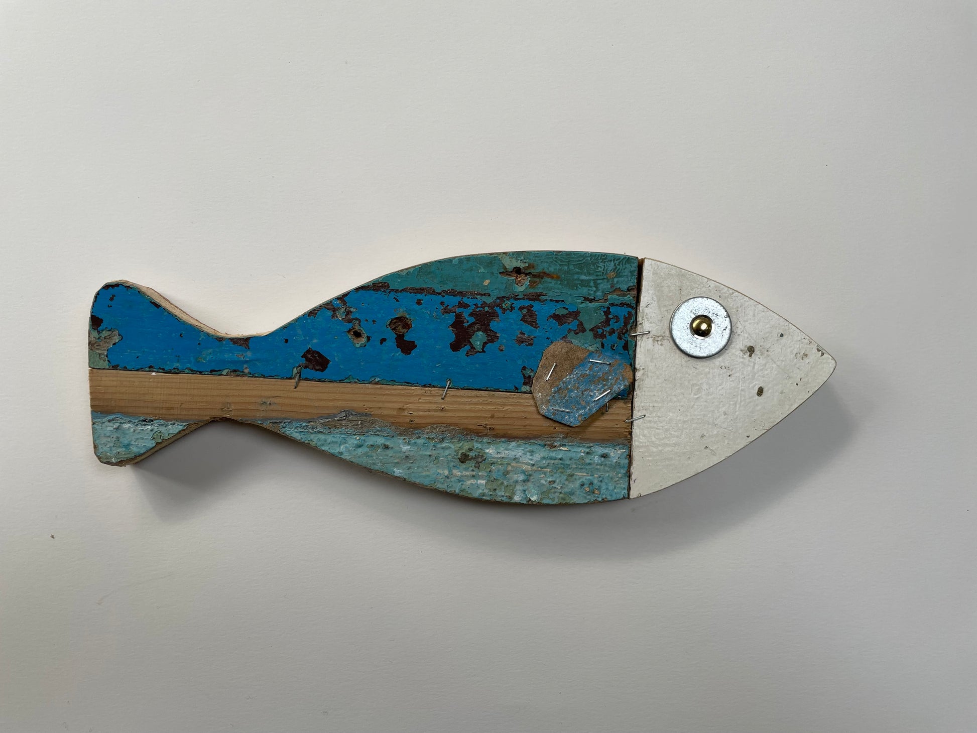 We brought these happy fish back from Morocco and sold every single one much faster than we imagined. A local fisherman/artisan makes these clever little poissons from the salvaged wood and hardware of derelict sardine fishing boats. He adds his own whimsical touches to each.