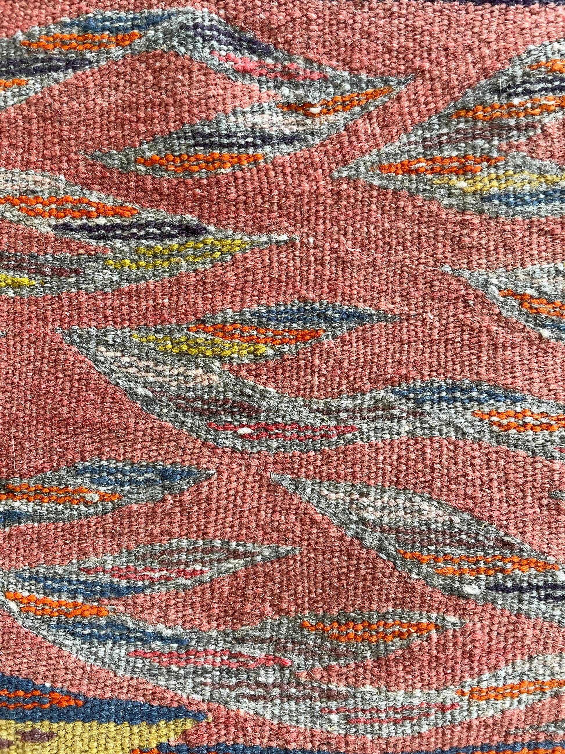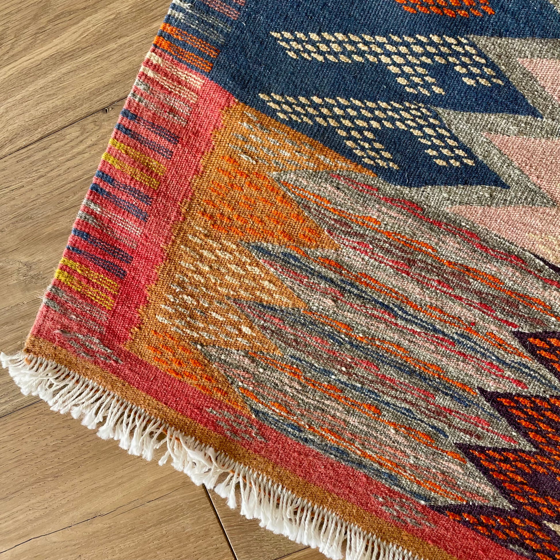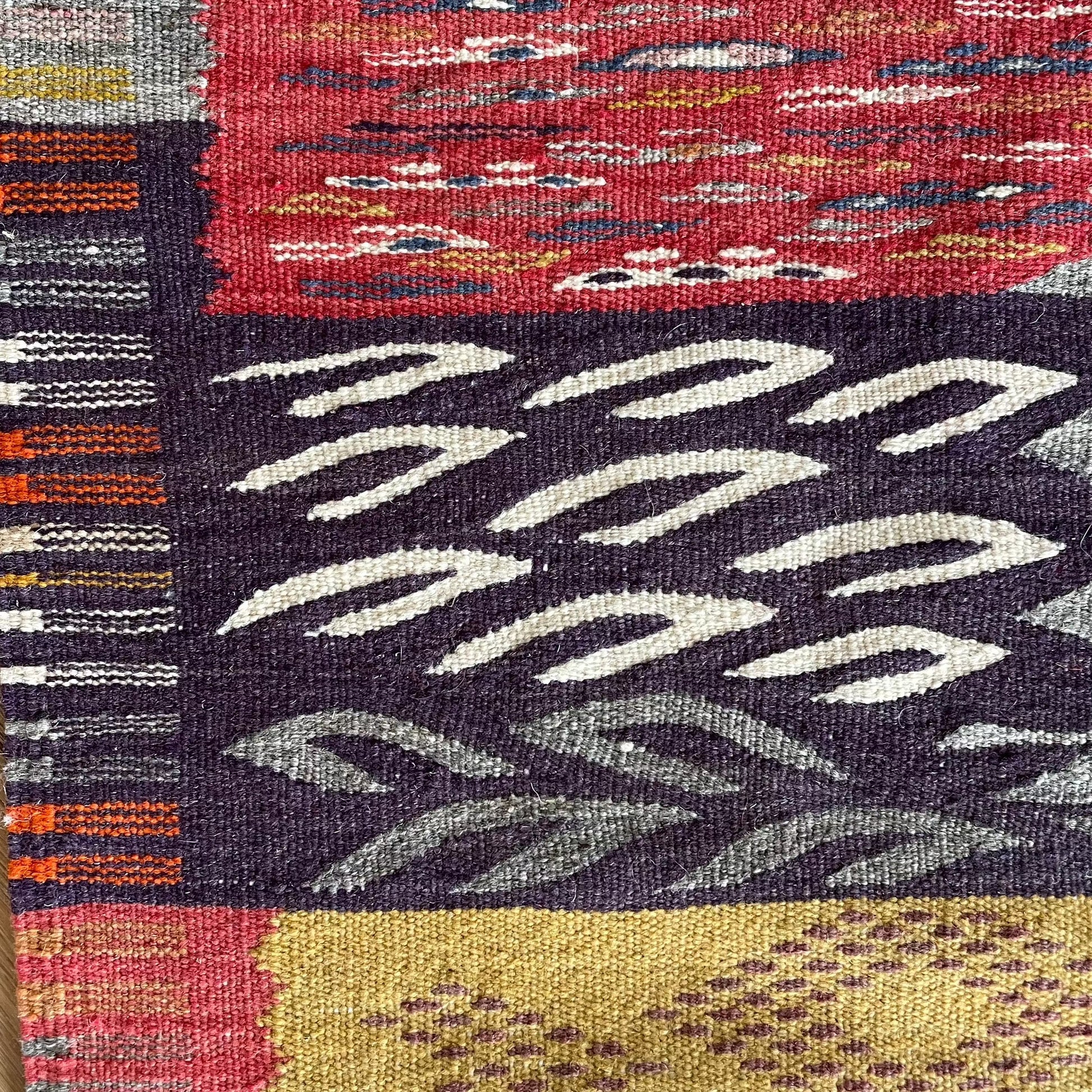 Woven works of art. That is the reputation of the sought after Taznakht rugs. Each one tells a story and. each one is utterly unique. Choice of design, color and overall composition are left entirely to the weaver. Abstract and multi-colored patterns are always distinctive. They're the 'crazy quilts' of southern Morocco. 'Kenza' is a great example of the weaver's technique and whimsy.